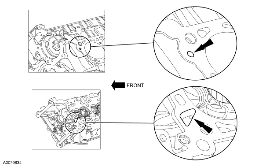 NOTICE: During engine repair procedures, cleanliness is extremely important. Any foreign material (including any material created while cleaning gasket surfaces) that enters the oil passages, coolant passages or the oil pan may cause engine failure.