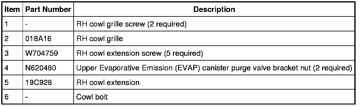 7. Remove the RH cowl grille.