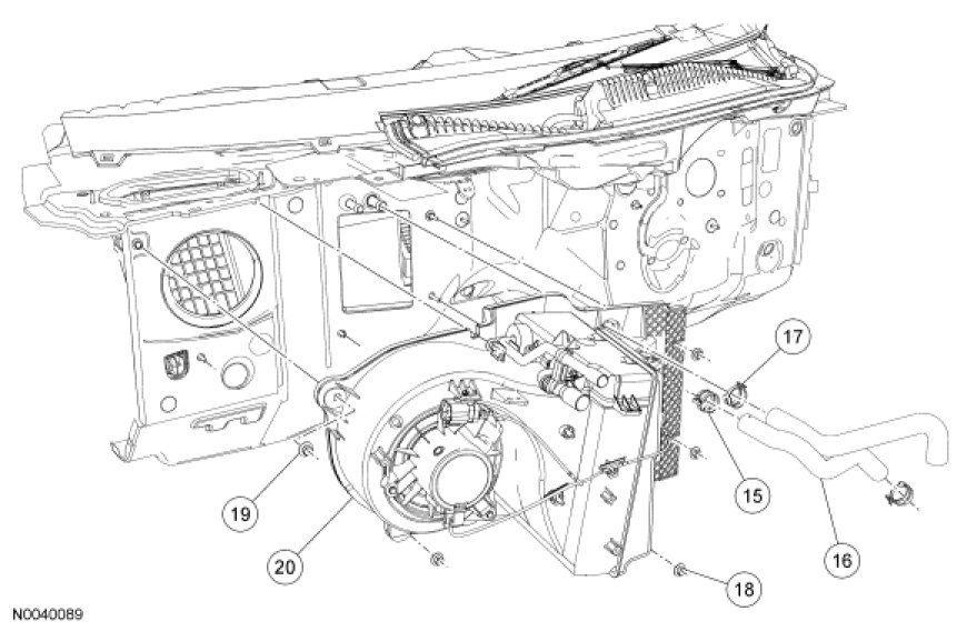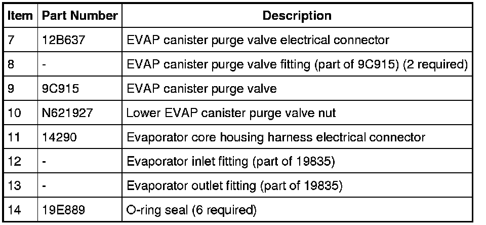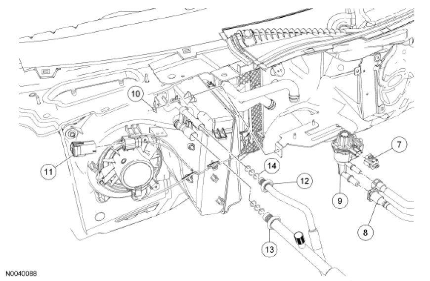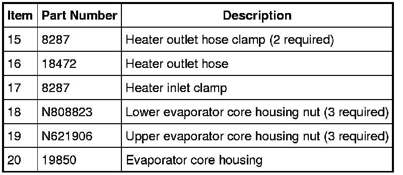 NOTE: If an evaporator core leak is suspected, the evaporator core must be vacuum leak tested before it is removed from the vehicle. For additional information, refer to Climate Control System - General Information and Diagnostics Testing and Inspection.