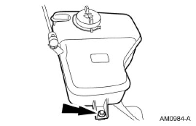 18. Remove the bolt and position the windshield washer fluid reservoir aside.