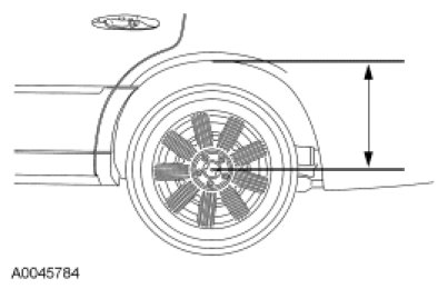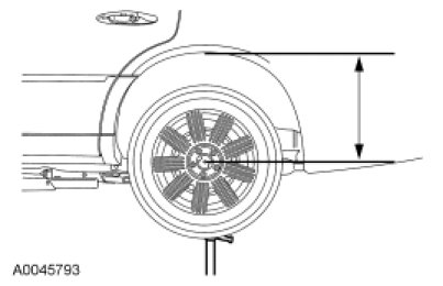 1. For reference during the installation procedure, measure the distance from the lip of the fender to the center of the wheel hub with the vehicle in a static level ground position.