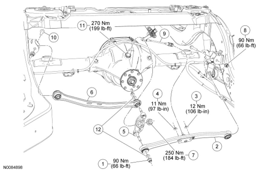 12. Tighten the RH lateral arm-to-frame nut to 90 Nm (66 lb-ft).