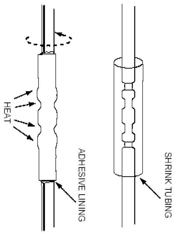8. Use shielded heat gun to heat the repaired area until adhesive flows Out of both ends of heat shrink tubing.