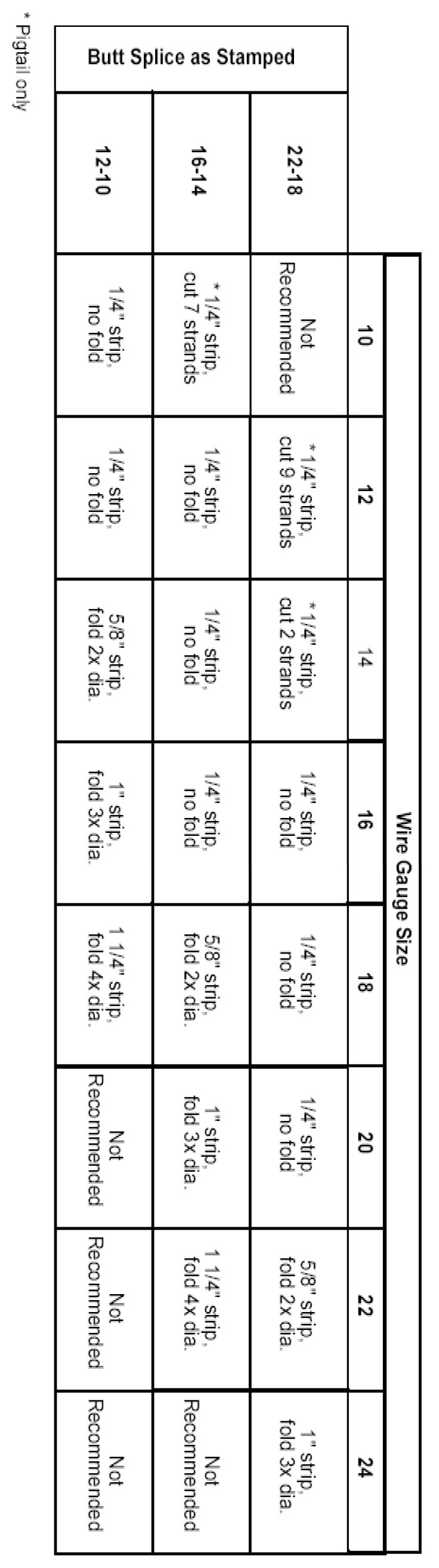 Recommended splicing method - Crimp (For 10-22 AWG Diameter Wire to Like Wire Diameter)