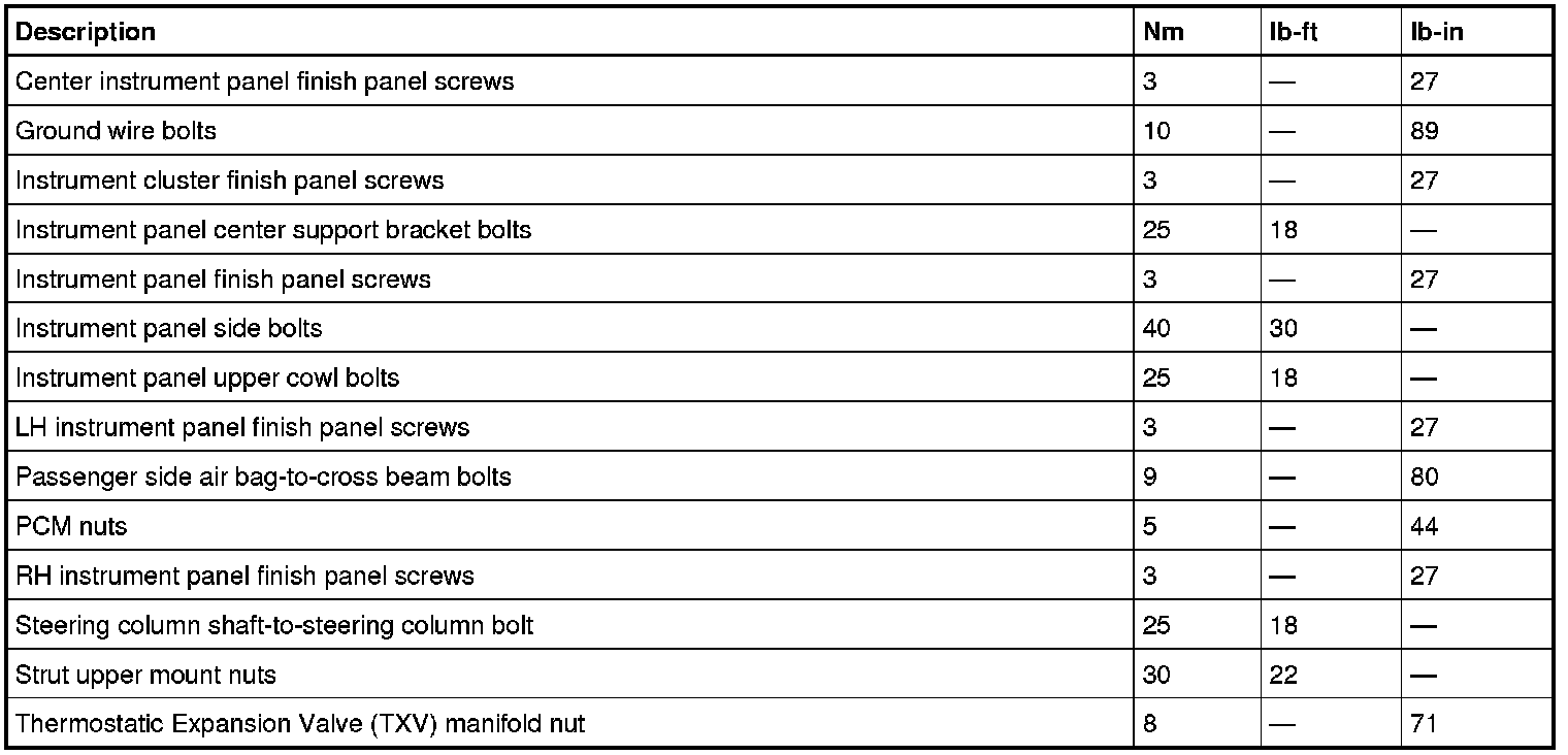 Dashboard / Instrument Panel: Specifications