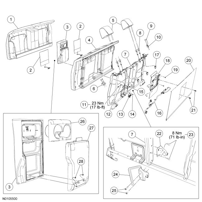 20. Install the rear seat backrest. For additional information, refer to Seat Backrest- Rear Seat Backrest - Rear.