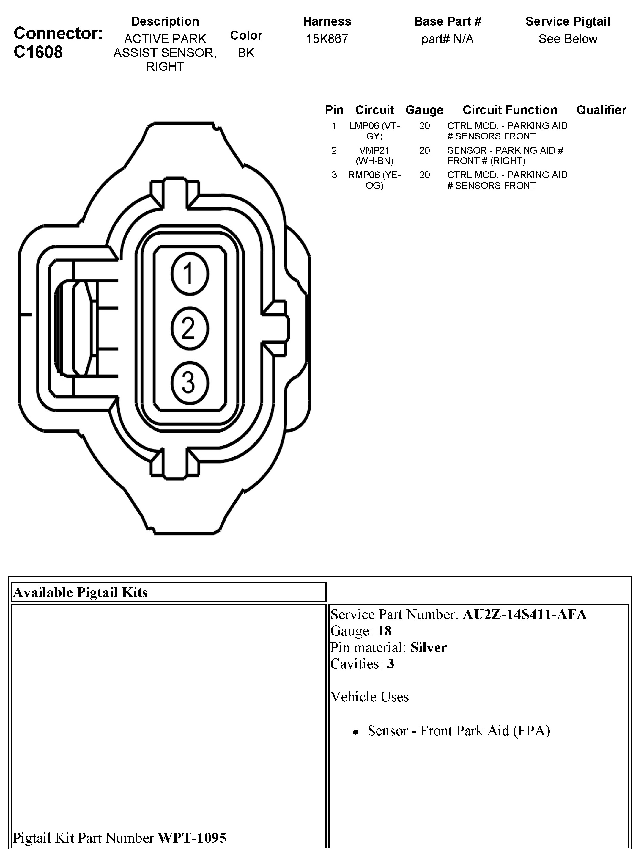 C1608 Active Park Assist Sensor, Right
