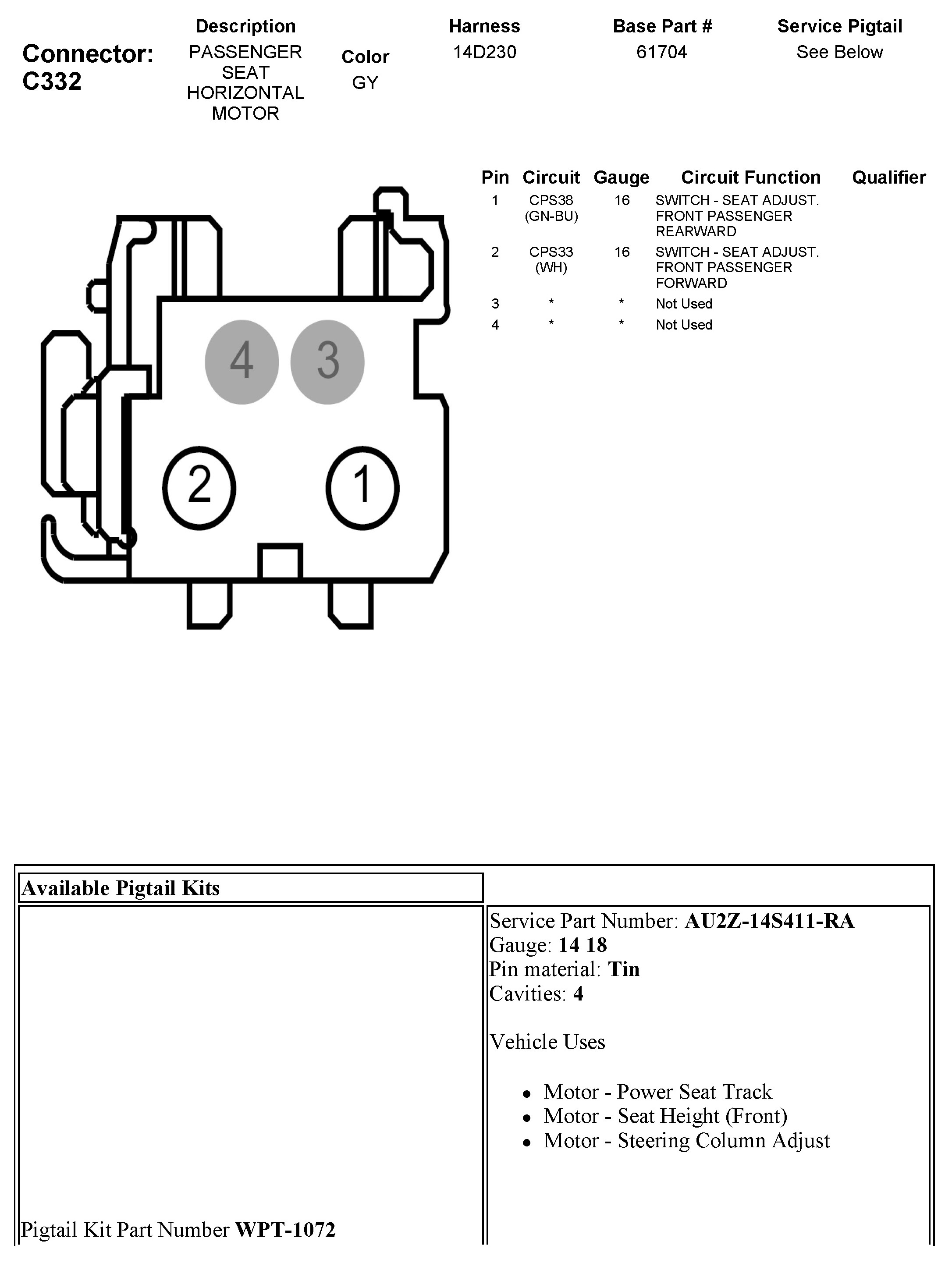 C332 Passenger Seat Horizontal Motor