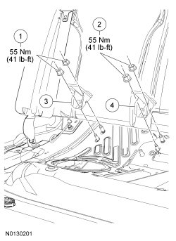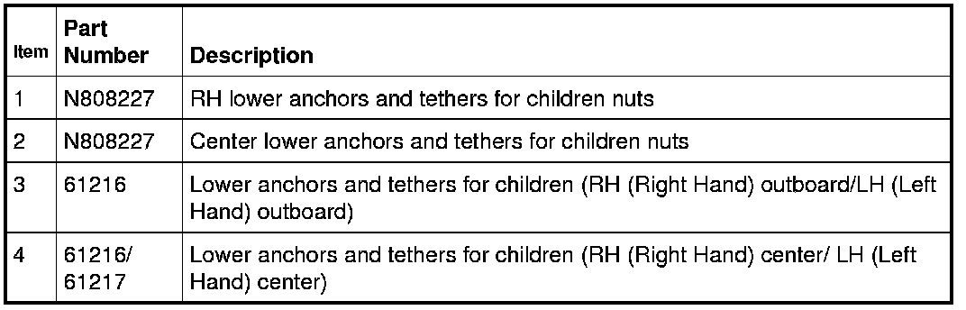 2. Remove the 2 nuts and affected lower anchors and tethers for children.