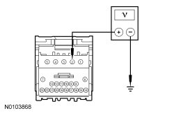 - Measure the voltage between RFA (Remote Function Actuator) module C2153B-2, circuit CDC35 (BU/WH), harness side and ground.