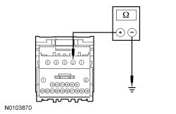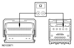 - Measure the resistance between RFA (Remote Function Actuator) module C2153B-2, circuit CDC35 (BU/WH), harness side and ground.