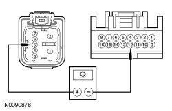 - Measure the resistance between LH front window motor C524-4, circuit CPW11 (BU/GY), harness side and LH front window control switch C504-5, circuit CPW11 (BU/GY), harness side.