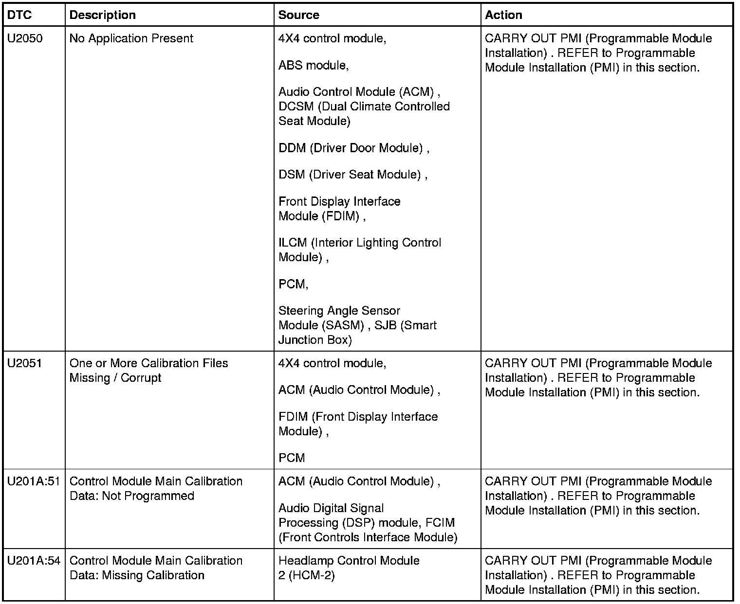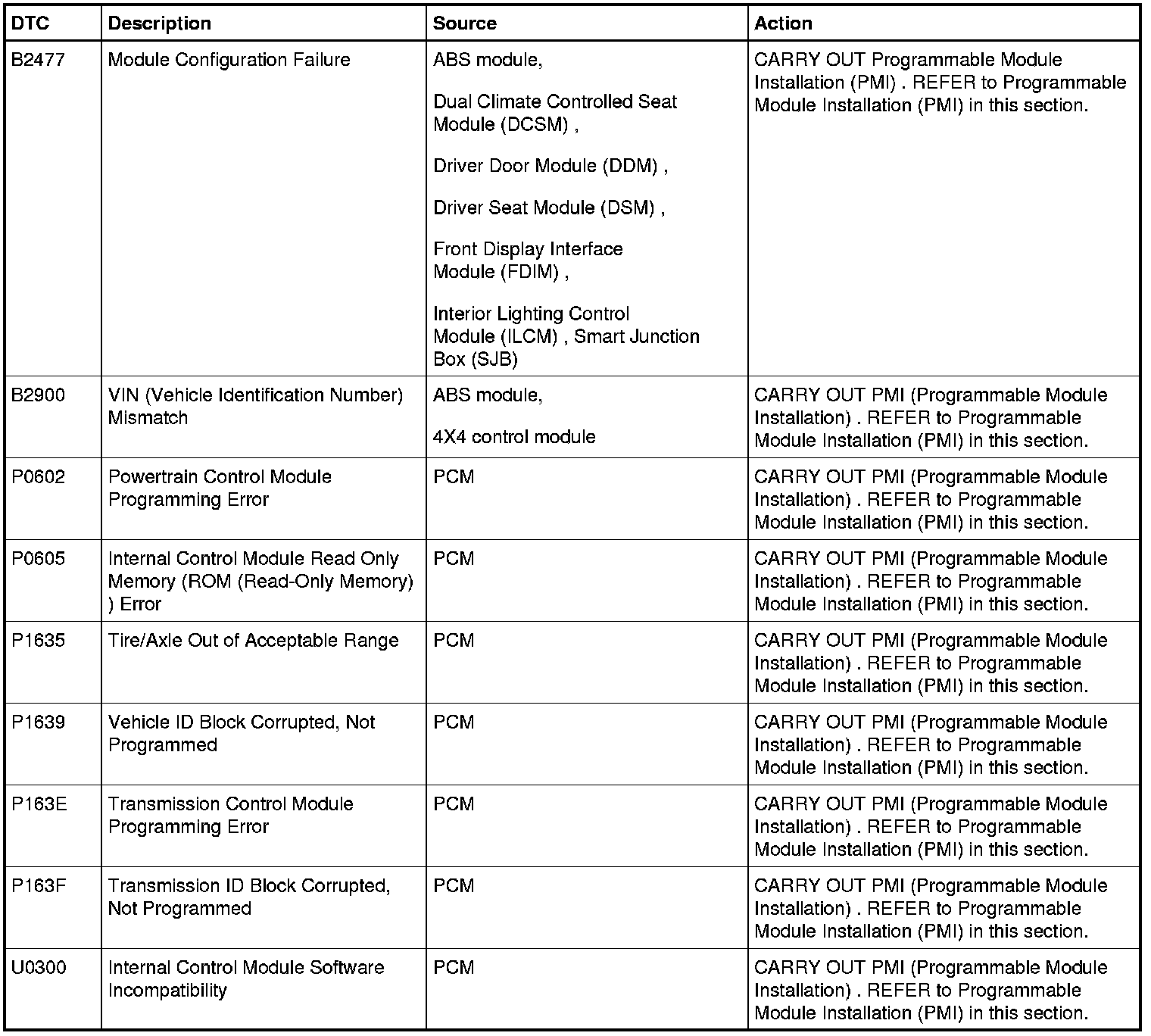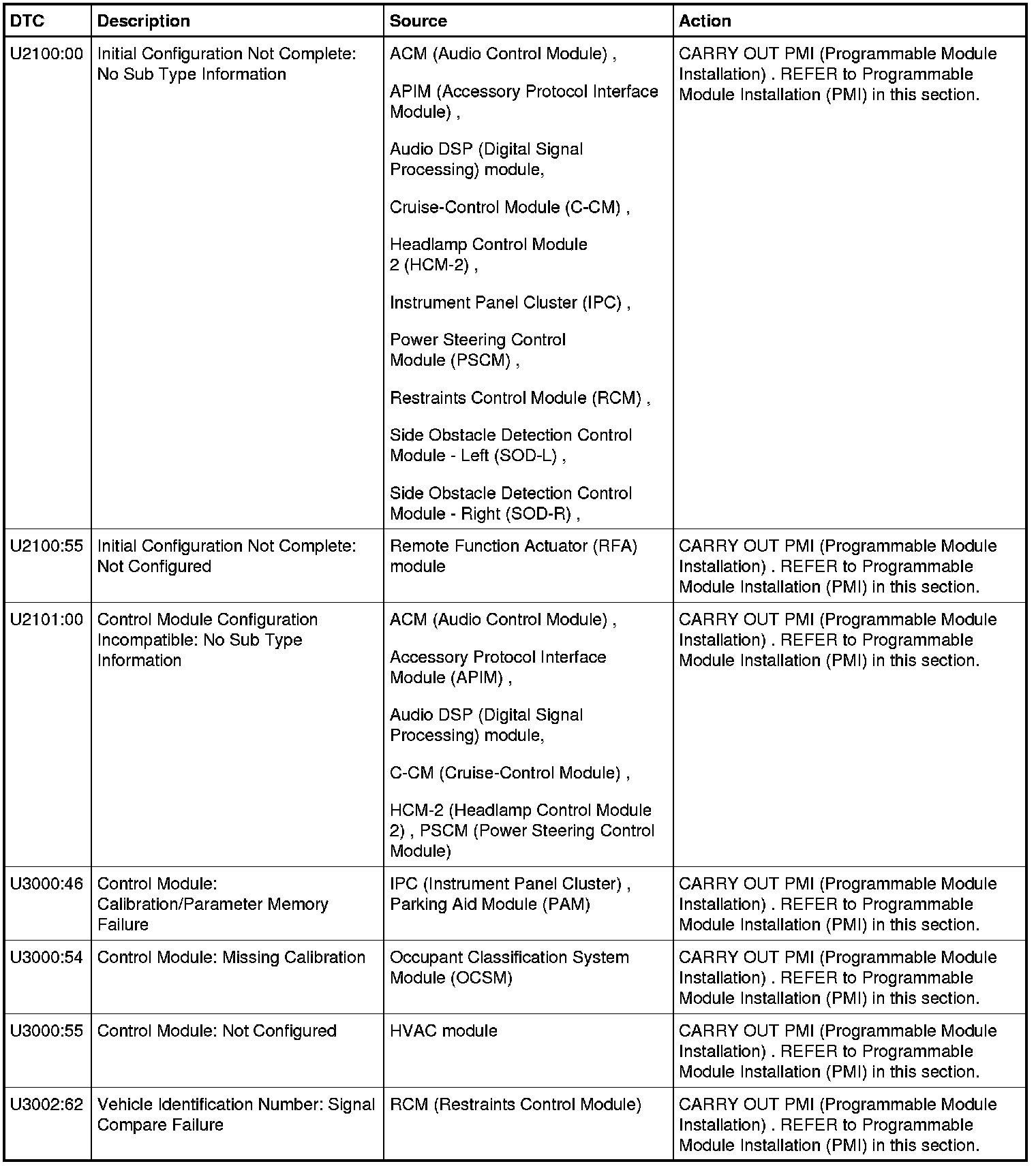 NOTE: Some modules on this vehicle utilize a 5-character DTC followed by a 2-character failure-type code. The failure-type code provides information about specific fault conditions such as opens, or shorts to ground. Continuous Memory DTCs have an additional 2-character DTC status code suffix to assist in determining DTC history.