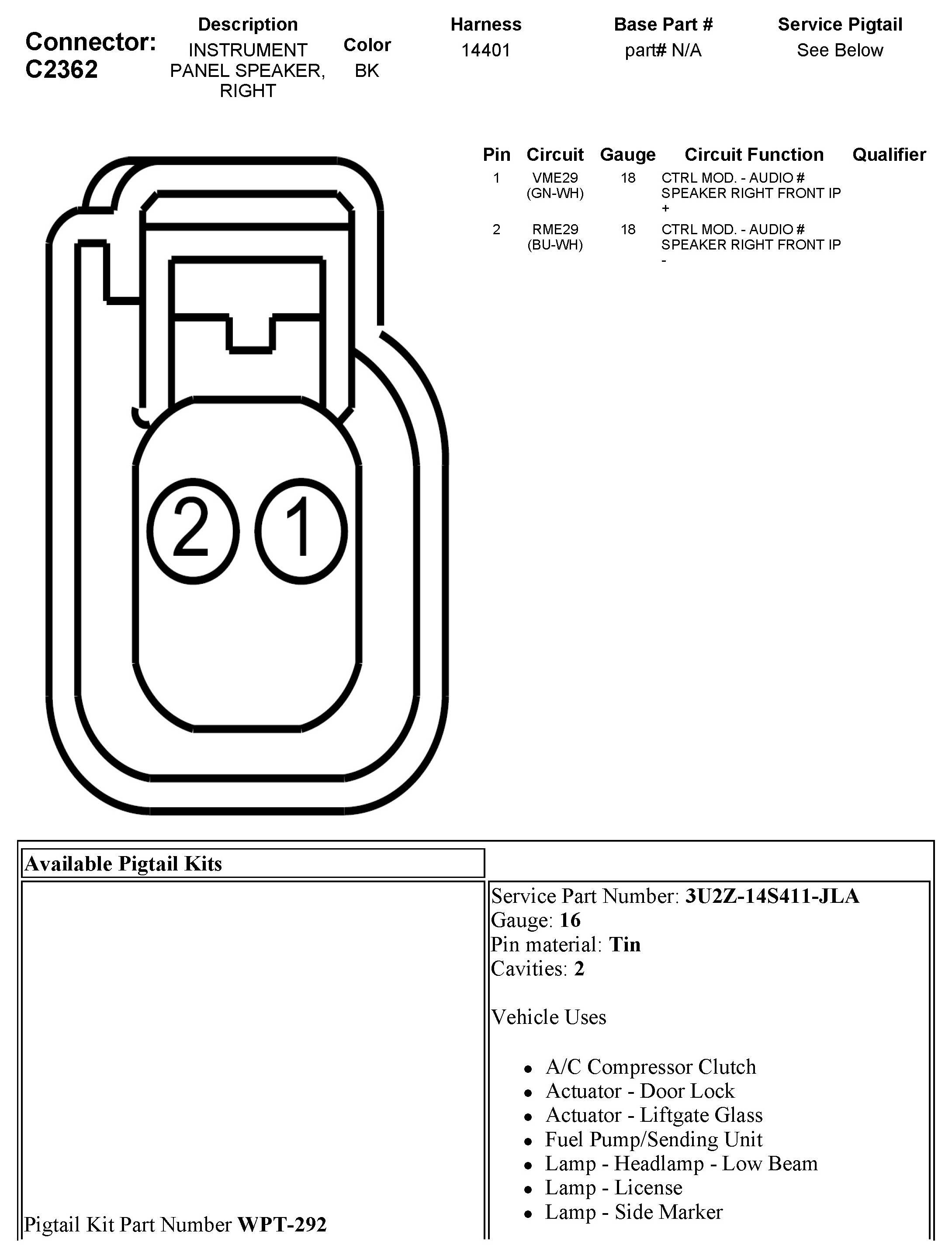 C2362 Instrument Panel Speaker, Right