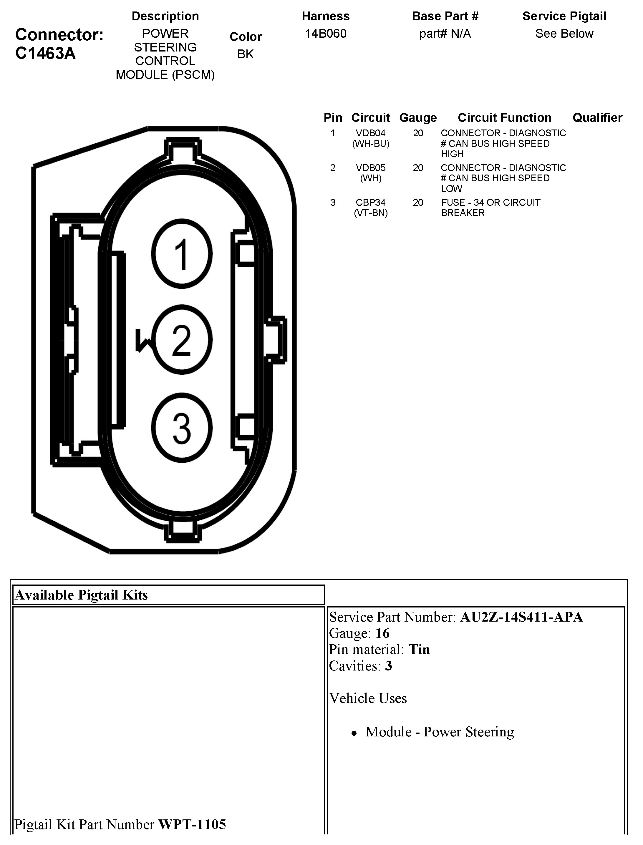 C1463A Power Steering Control Module (PSCM)