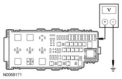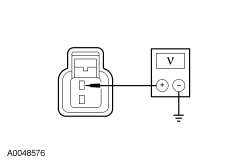 - Measure the voltage between the A/C clutch relay socket, circuit SBB24 (VT/RD) and ground.