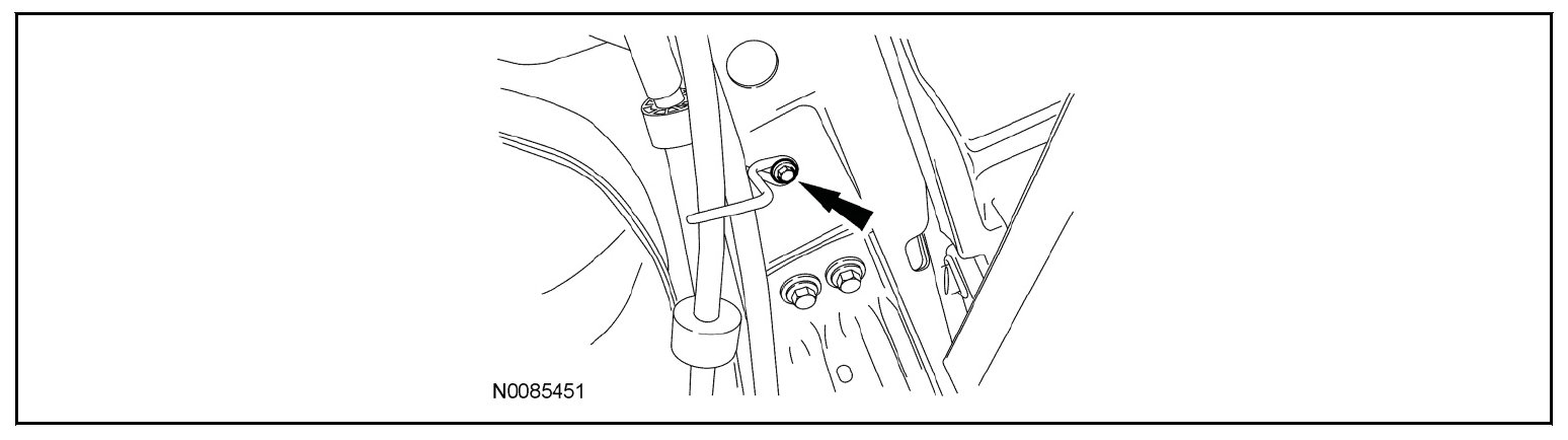 11. Remove the wheel opening park brake cable bracket bolt and reposition the bracket.