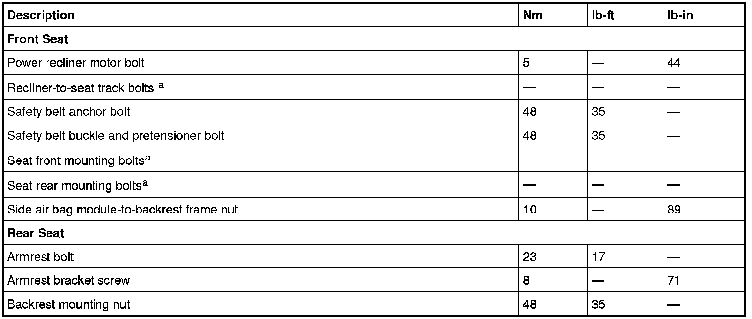 Seats: Specifications