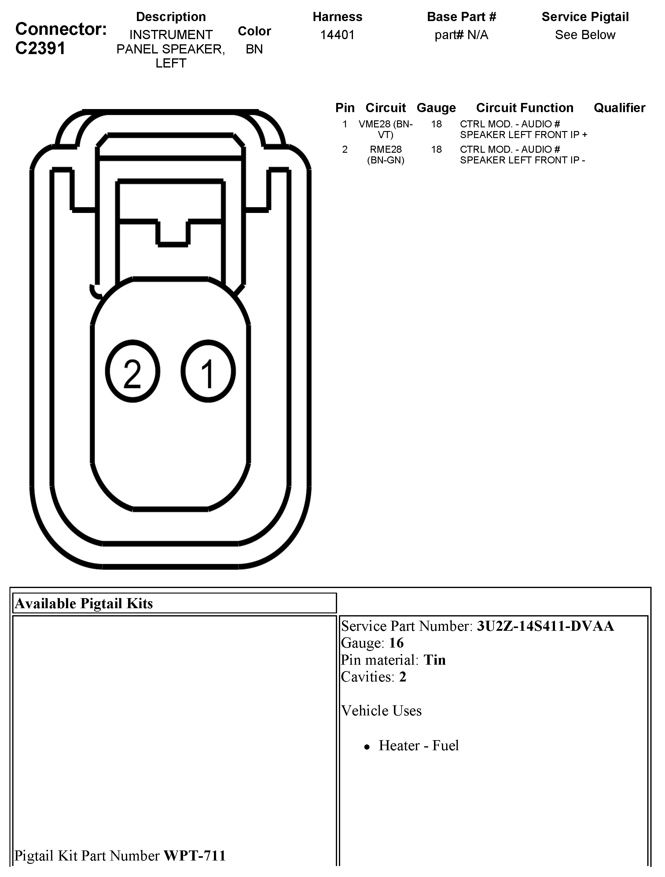 C2391 Instrument Panel Speaker, Left