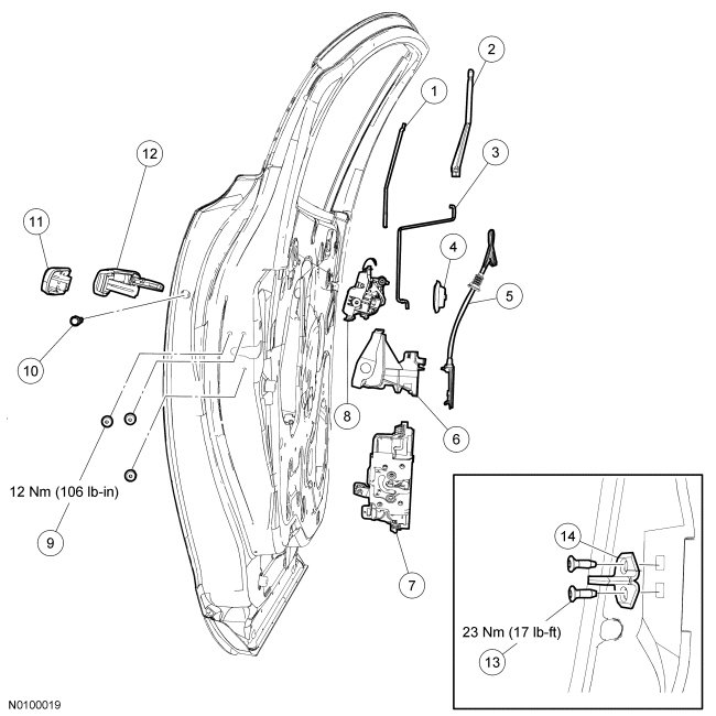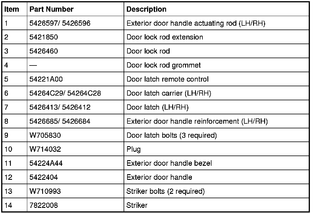 Rear Door Handles, Locks and Latches - Exploded View