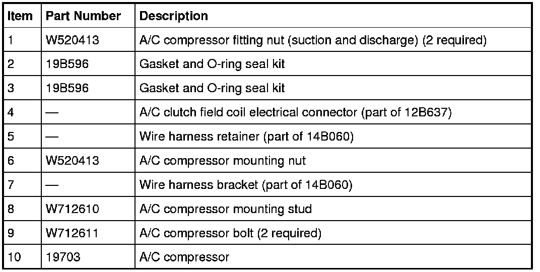 NOTICE: If installing a new Air Conditioning (A/C) compressor due to an internal failure of the old unit, either a flushing procedure or system filtering procedure must be carried out to remove contamination from the A/C system. Failure to remove contamination from the A/C system, if present, will result in poor A/C performance and/or damage to the new A/C compressor and other components.