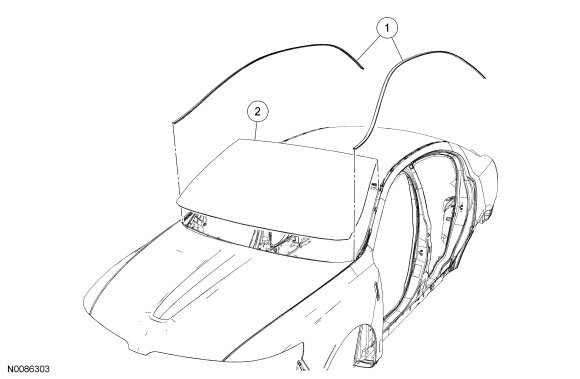 1. Position aside the front portion of the LH and RH roof ditch mouldings. For additional information about the roof ditch moulding clips and their location(s), refer to Roof Ditch Moulding in Auxiliary Step / Running Board.