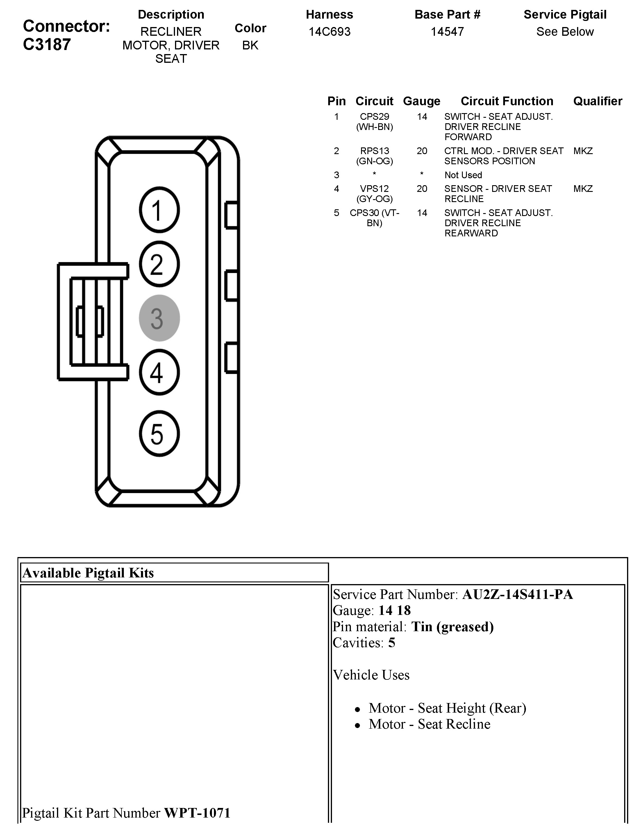 C3187 Recliner Motor, Driver Seat