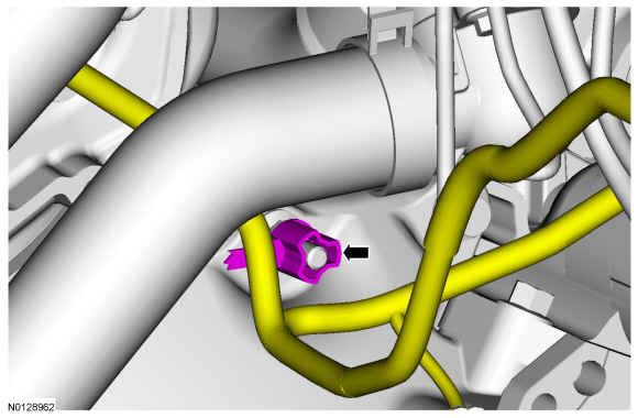 14. Tighten the A/C (Air Conditioning) compressor nut to 25 Nm (18 lb-ft).