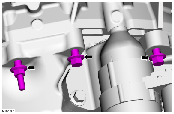 17. Tighten the 3 LH bellhousing-to-engine bolts to 48 Nm (35 lb-ft).