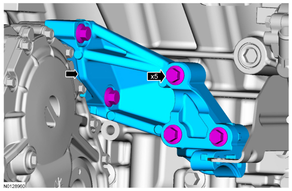 12. Remove the 5 bolts and the Power Transfer Unit (PTU) support bracket.