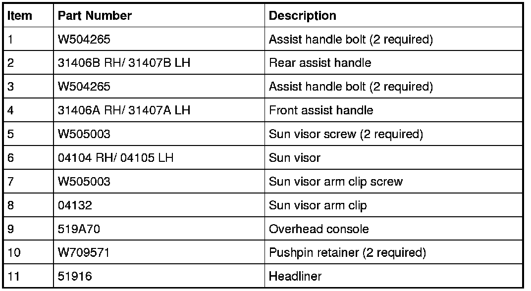 13. NOTE: The sun visor wiring is secured to the headliner and cannot be separated in vehicle.