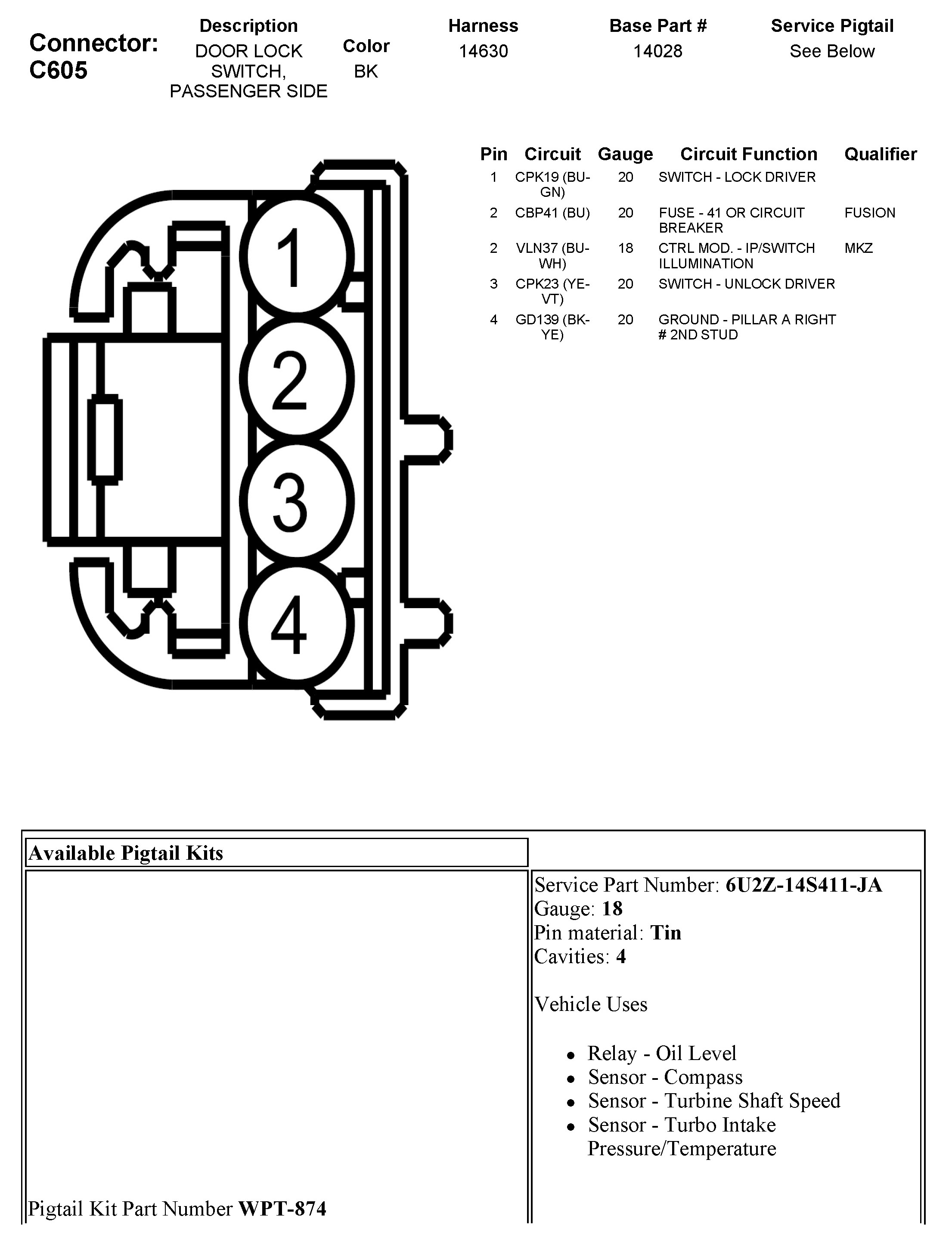C605 Door Lock Switch, Passenger Side