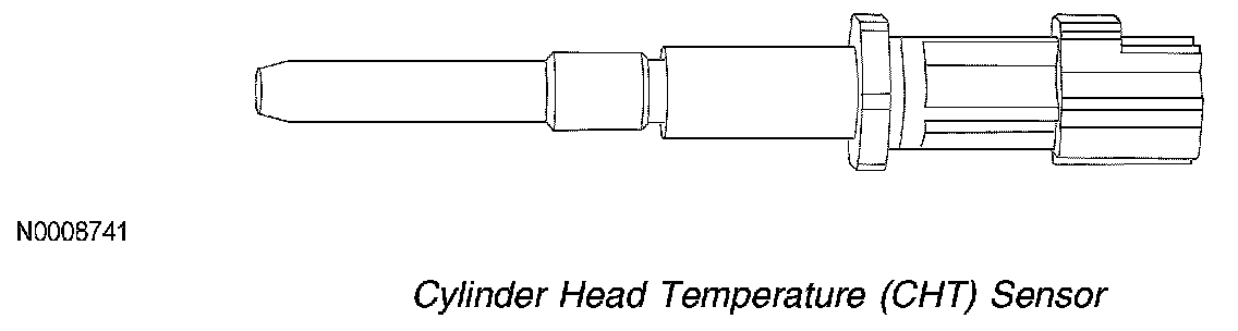 The CHT sensor is installed in the aluminum cylinder head and measures the metal temperature. The CHT sensor provides complete engine temperature information and can be used to infer coolant temperature. If the CHT sensor conveys an overheating condition to the PCM, the PCM then initiates a fail-safe cooling strategy based on information from the CHT sensor. A cooling system failure such as low coolant or coolant loss could cause an overheating condition. As a result, damage to major engine components could occur. Using both the CHT sensor and fail-safe cooling strategy, the PCM prevents damage by allowing air cooling of the engine and limp home capability. For additional information, refer to Powertrain Control Software Fail-Safe Cooling Strategy.