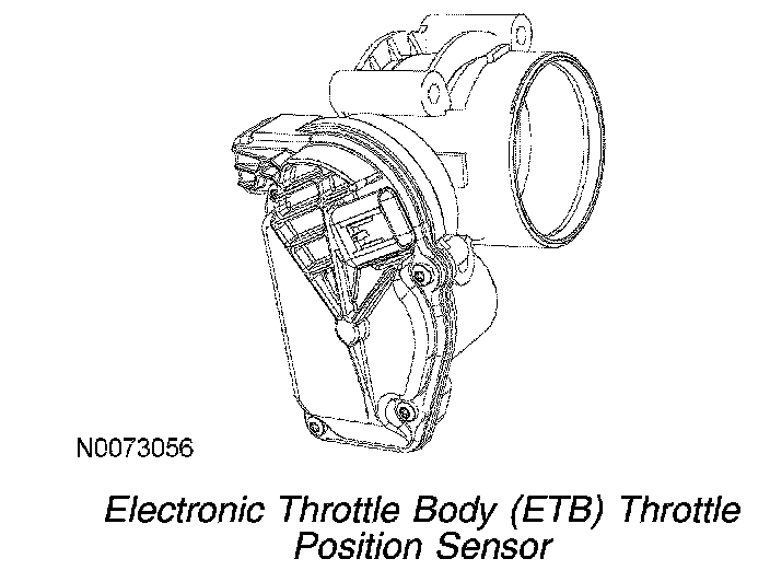 The ETB throttle position sensor has two signal circuits in the sensor for redundancy. The redundant ETB throttle position signals are required for increased monitoring. The first ETB throttle position sensor signal (TP1) has a negative slope (increasing angle, decreasing voltage) and the second signal (TP2) has a positive slope (increasing angle, increasing voltage). The two ETB throttle position sensor signals make sure the PCM receives a correct input even if one signal has a concern. There is one reference voltage circuit and one signal return circuit for the sensor. The reference voltage circuit and the signal return circuit is shared with the reference voltage circuits and signal return circuits used by the APP sensor. For additional information, refer to the description of the Torque-Based Electronic Throttle Control (ETC).