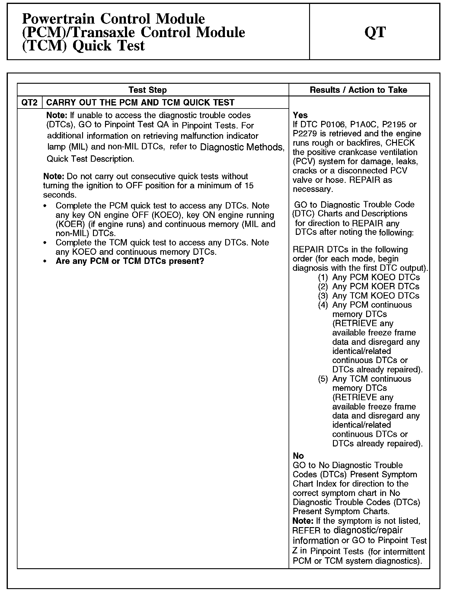 QT: Powertrain Control Module (PCM)/Transaxle Control Module (TCM) Quick Test