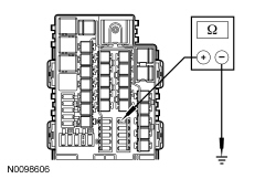- Measure the resistance between the output side of BJB (Battery Junction Box) fuse 13 (15A) and ground.
