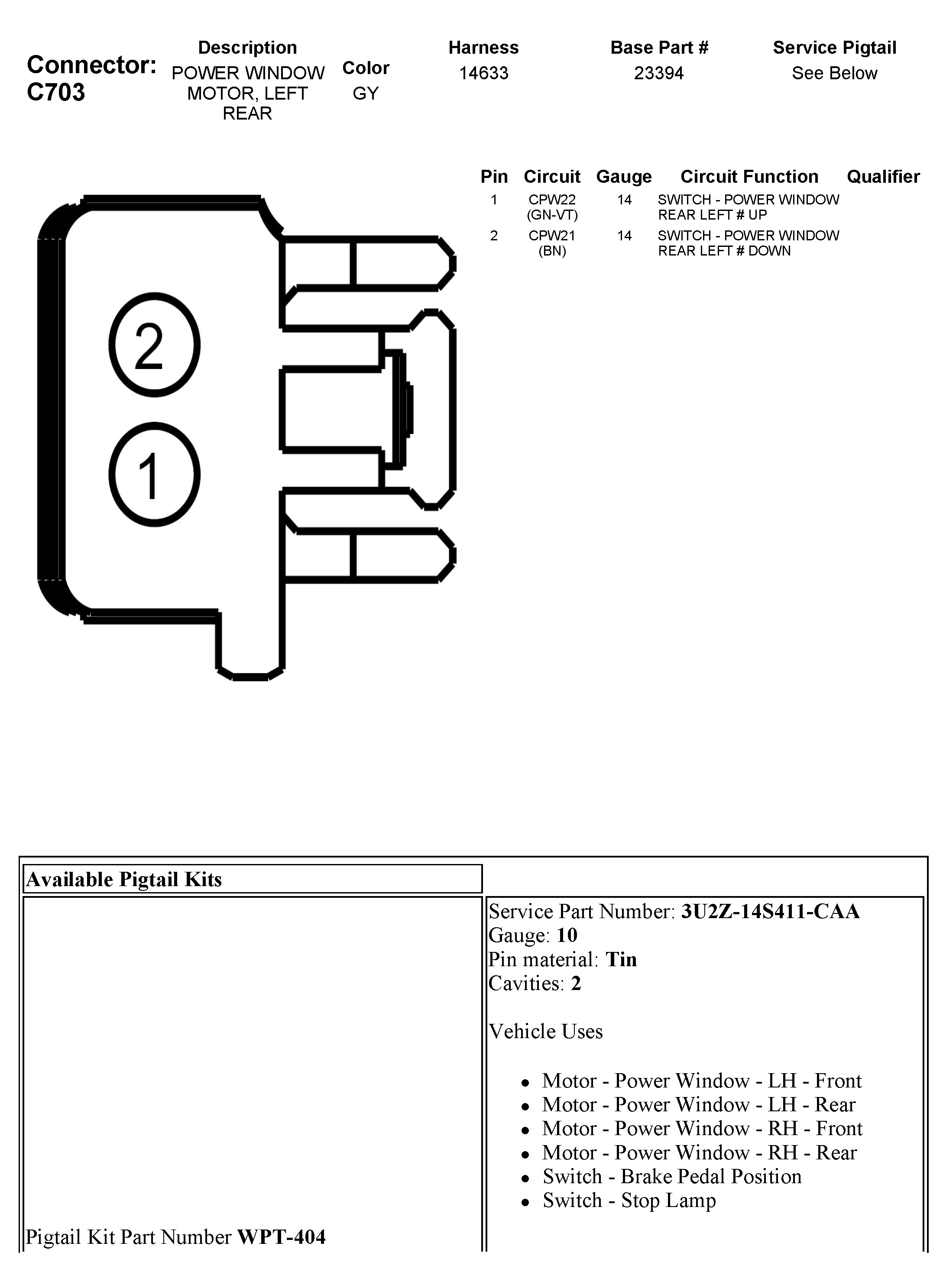 C703 Power Window Motor, Left Rear