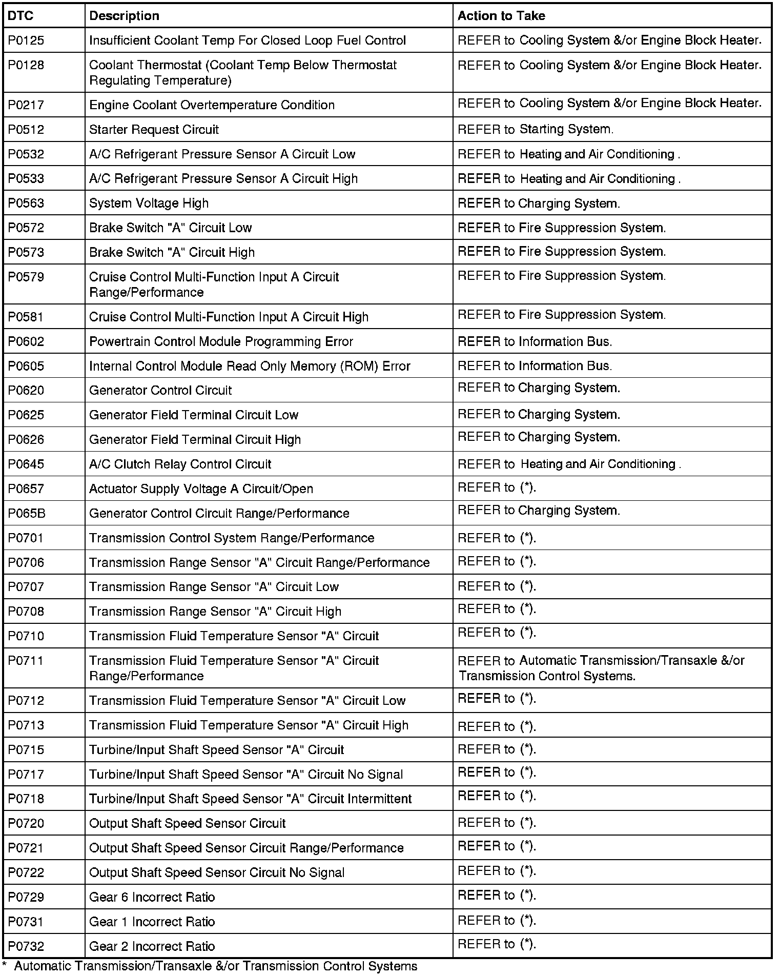PCM DTC Chart