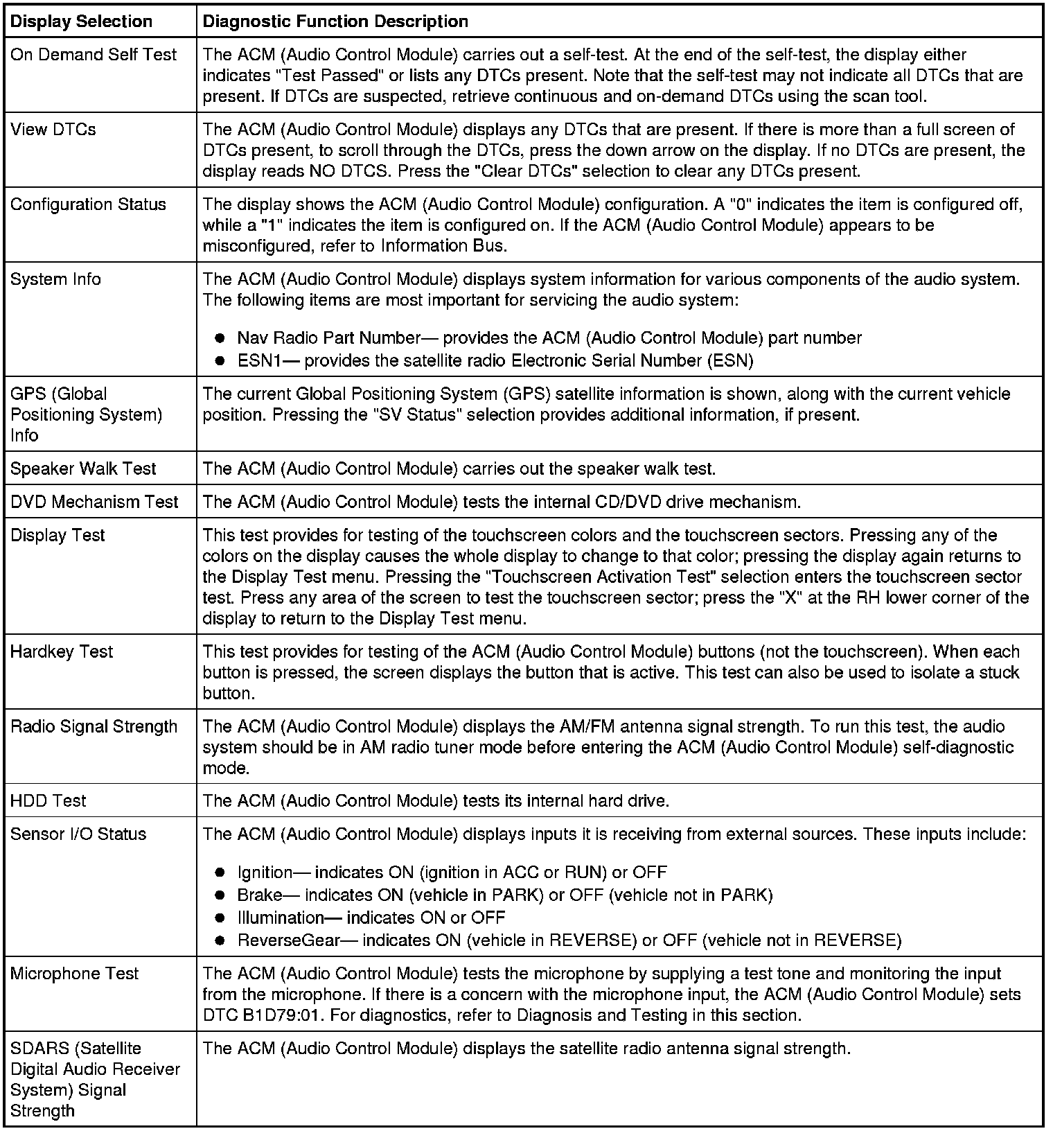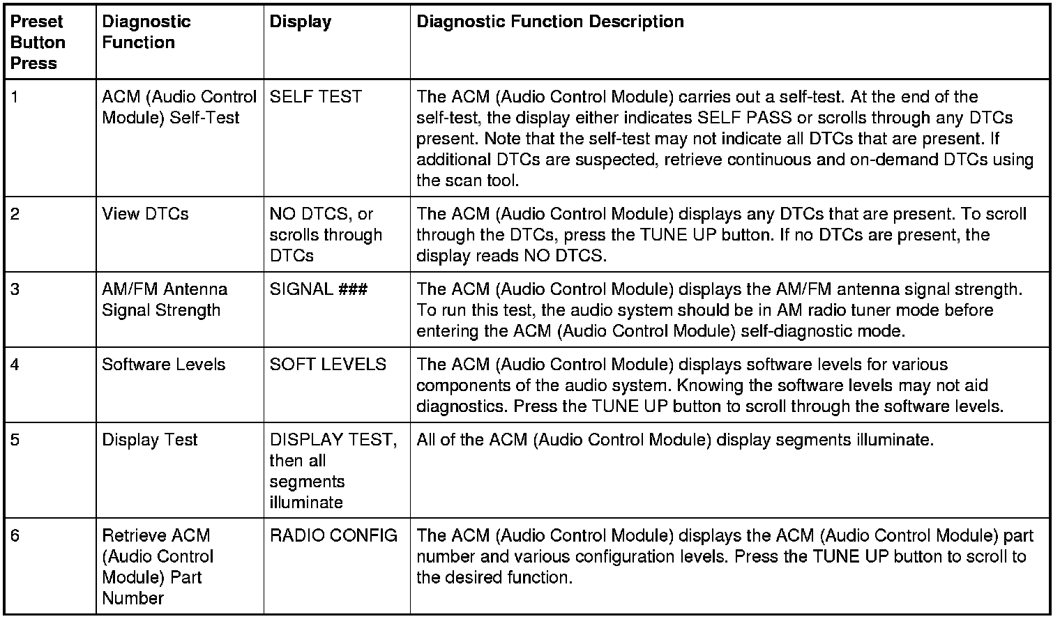 Audio Control Module (ACM) Self-Diagnostic Mode