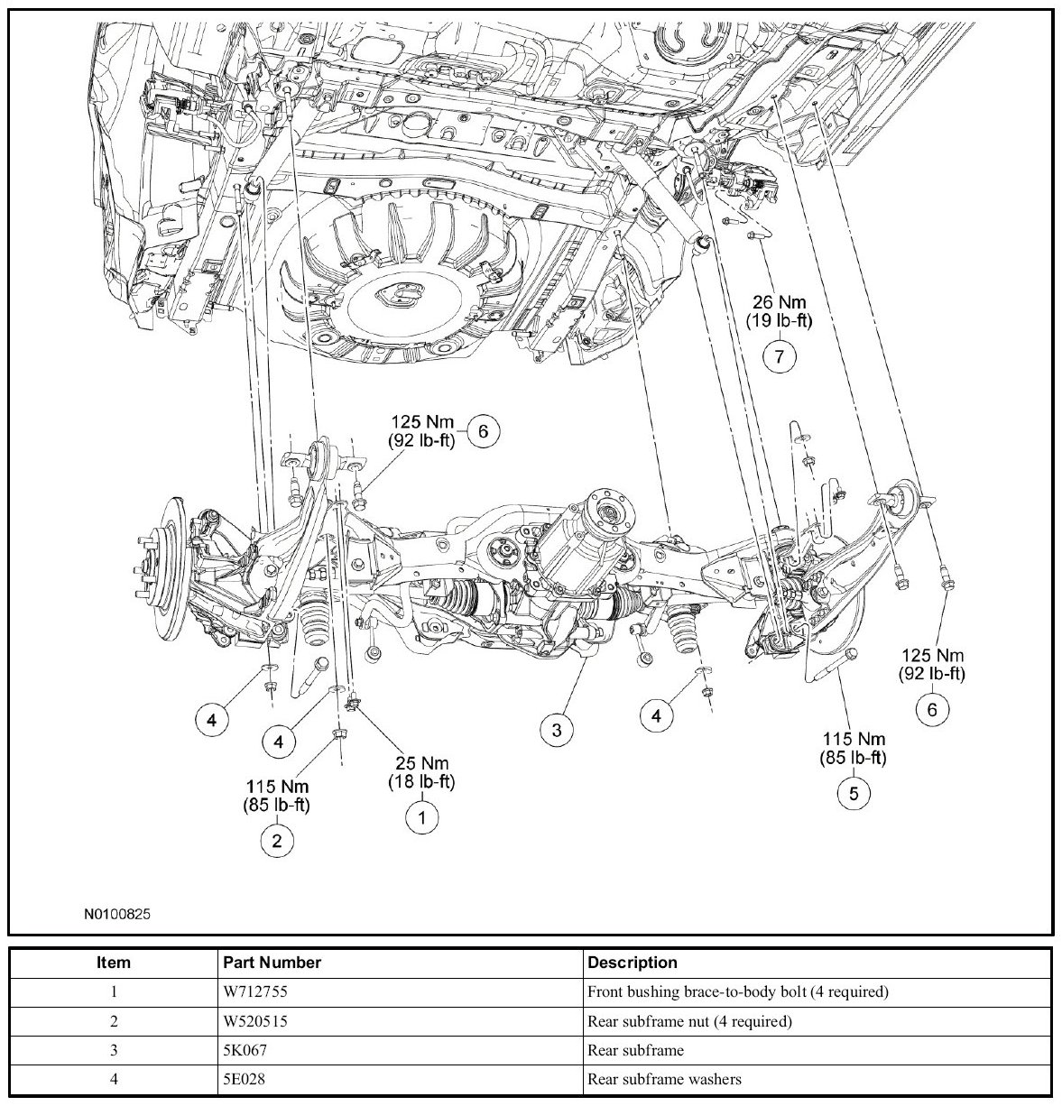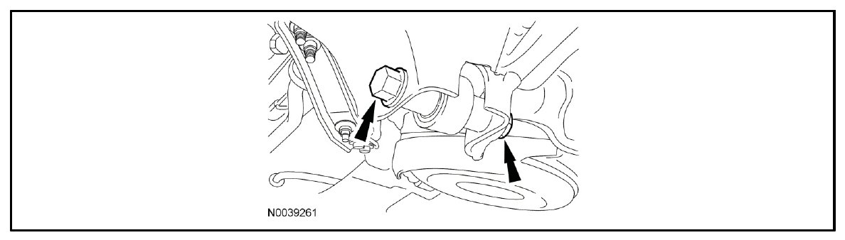 - To install, tighten to 115 Nm (85 lb-ft) with the suspension at the bushing fastener tightening position.