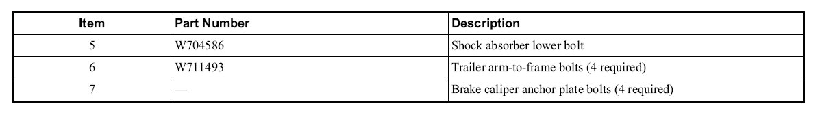 11. Remove the bolts from the parking brake cable-to-trailing link bracket.