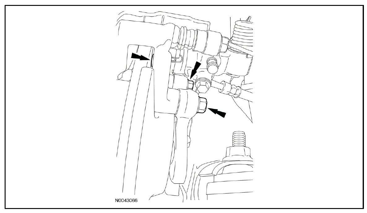 15. Remove the 4 front (2 each side) bushing brace-to-body bolts.