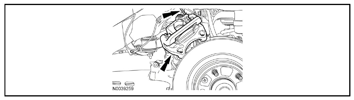 10. Position the brake calipers aside using mechanic's wire. It is not necessary to disconnect the hydraulic brake lines.