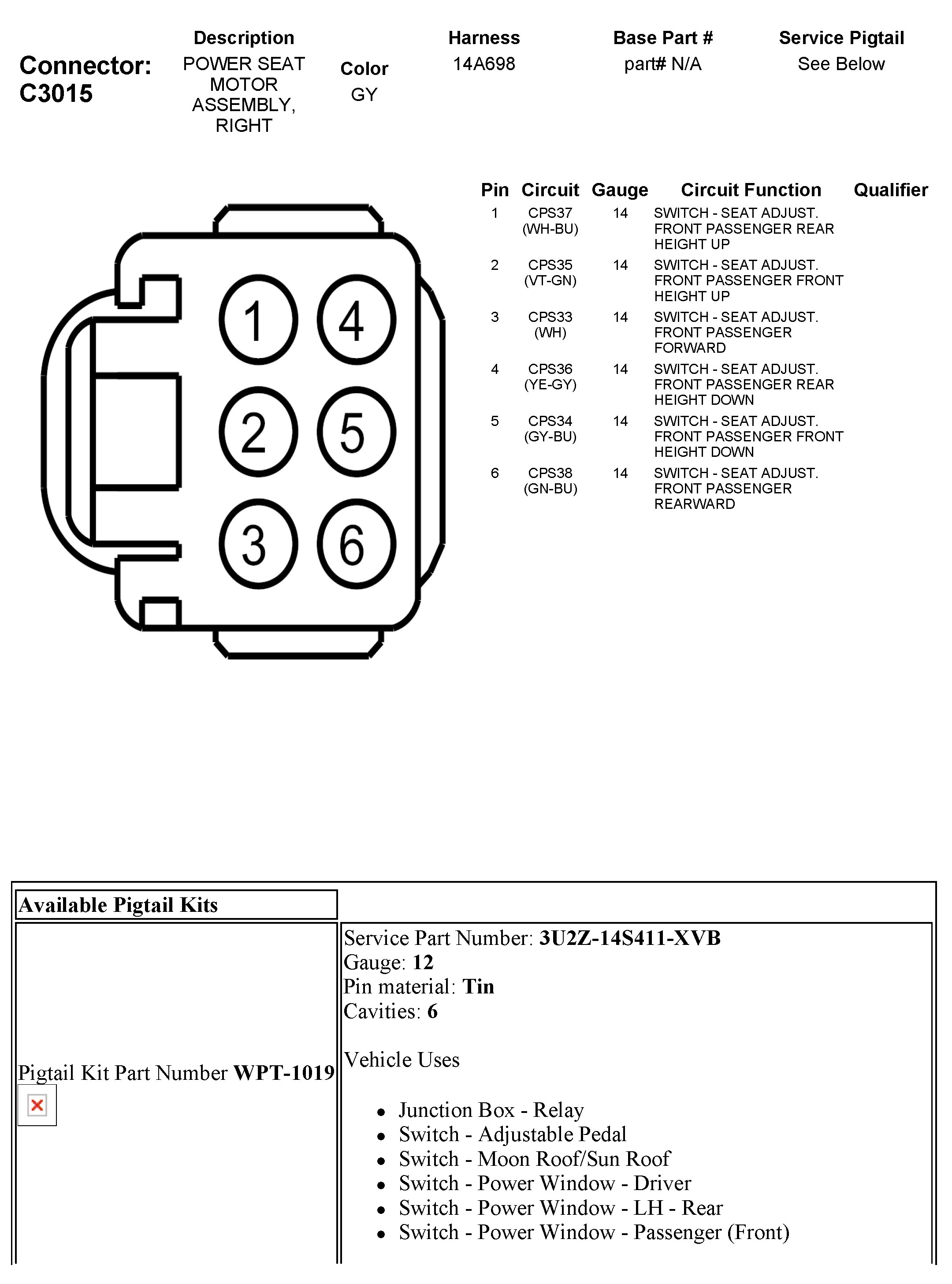 C3015 Power Seat Motor Assembly, Right