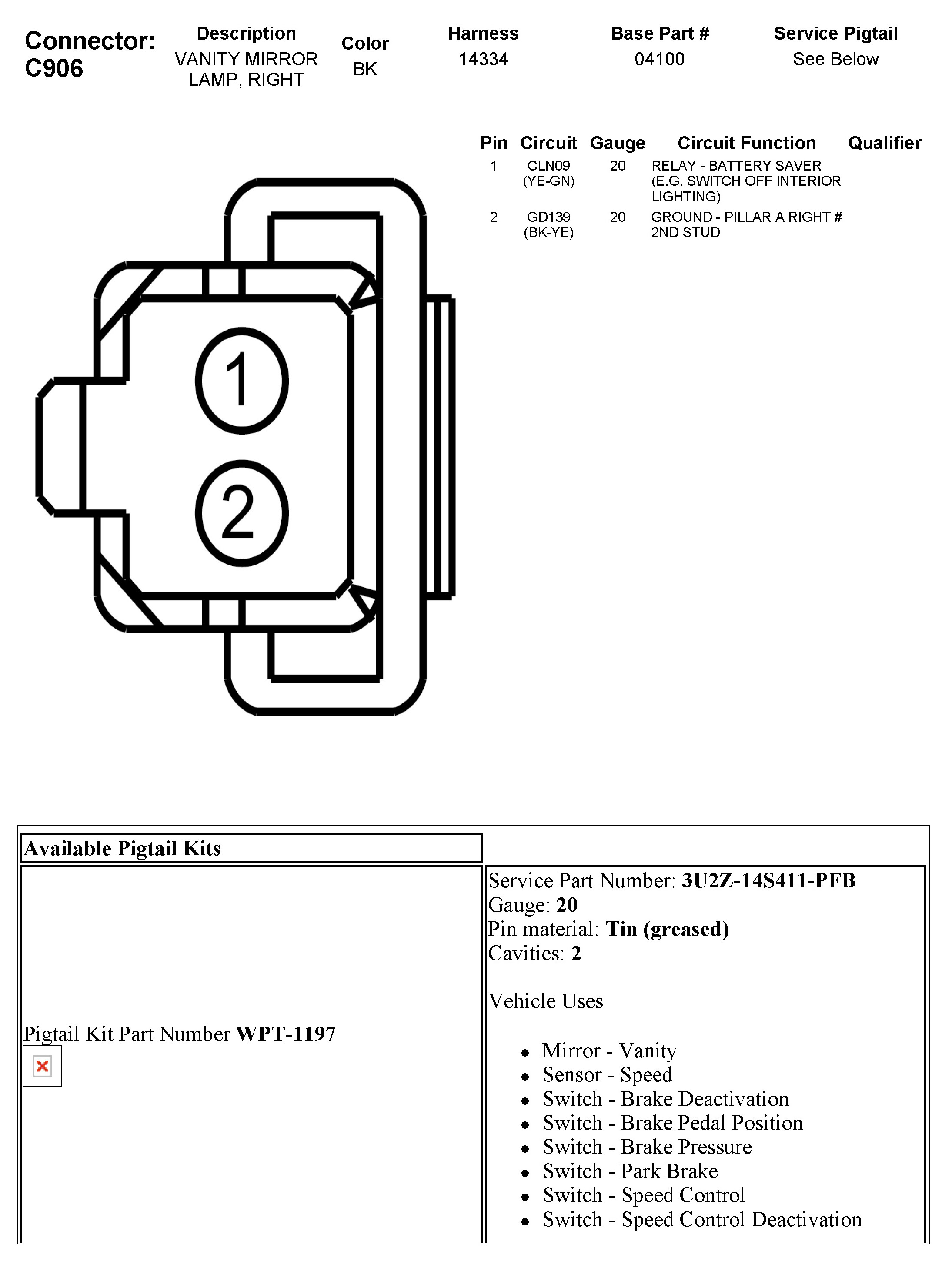 C906 Vanity Mirror Lamp, Right