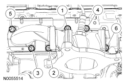 Using a new gasket, install the RH exhaust manifold and 6 new nuts. Tighten in 2 stages in the sequence shown: