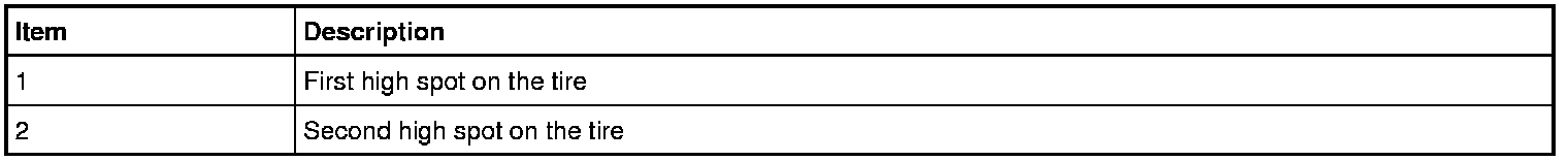 4. If the second runout or Road Force(R) measurement is still not within specification and both high spots are close to each other (within 101.6 mm [4 in]), the root cause is probably the tire (the high spot followed the tire).