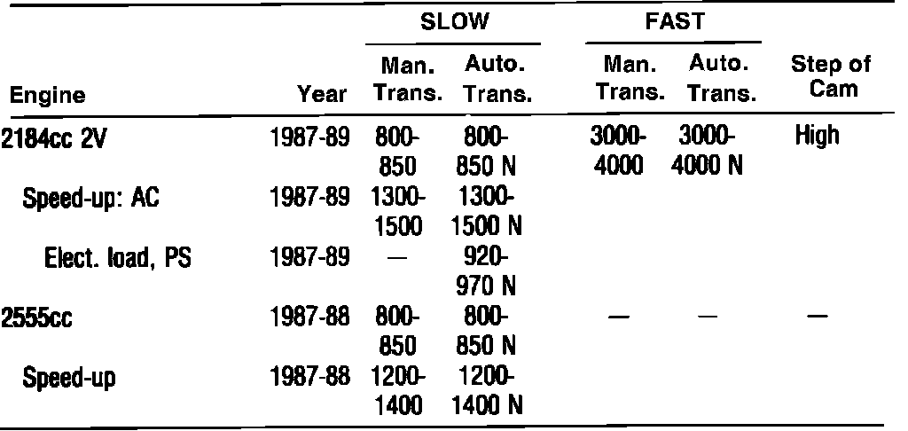 Fig. 6 Idle Speed W/O Computer Control - Specifications: