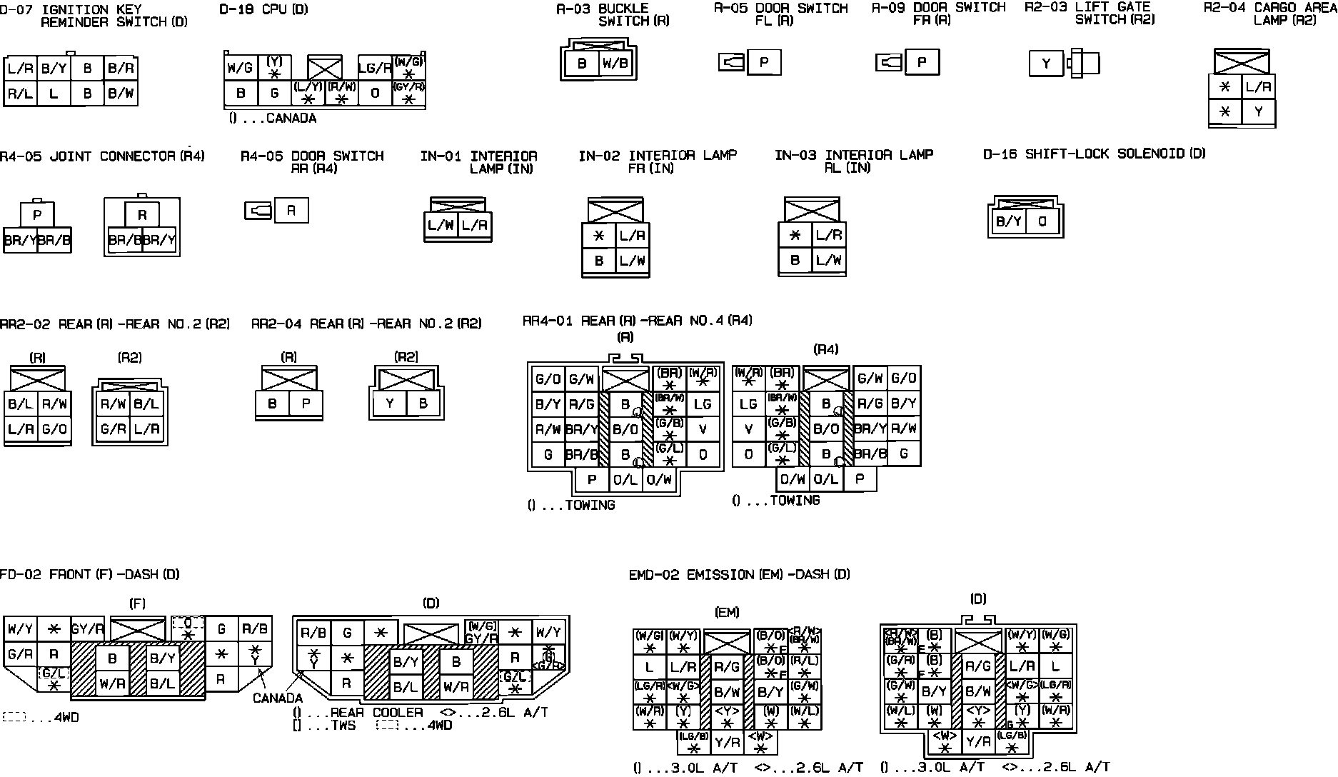 Interior Lamps, Shift-Lock System & Central Processing Unit. Connector Identification: