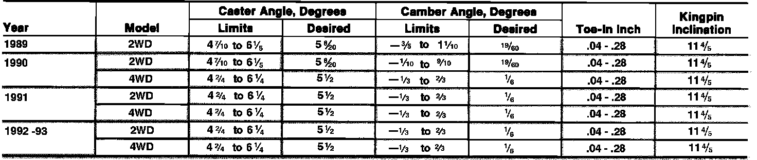 Wheel Alignment Specifications: